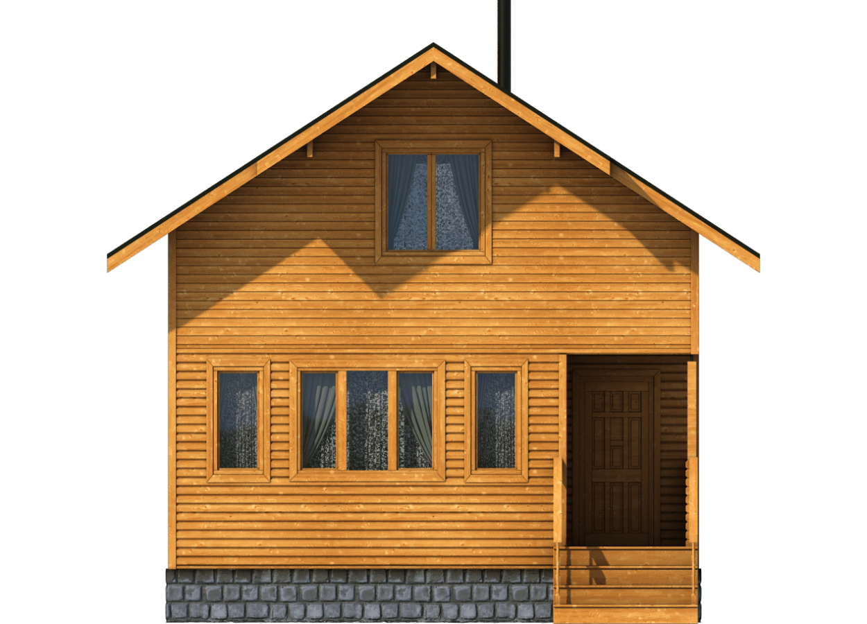 Наружная обшивка: Имитация бруса 17 мм, Внутренняя: ОСП 9 мм + ГКЛВ 12.5 мм., утепление- 150 мм. |