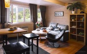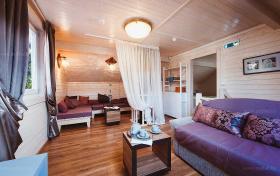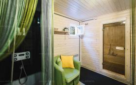 Стены и потолок обшиты ольховой вагонкой |
