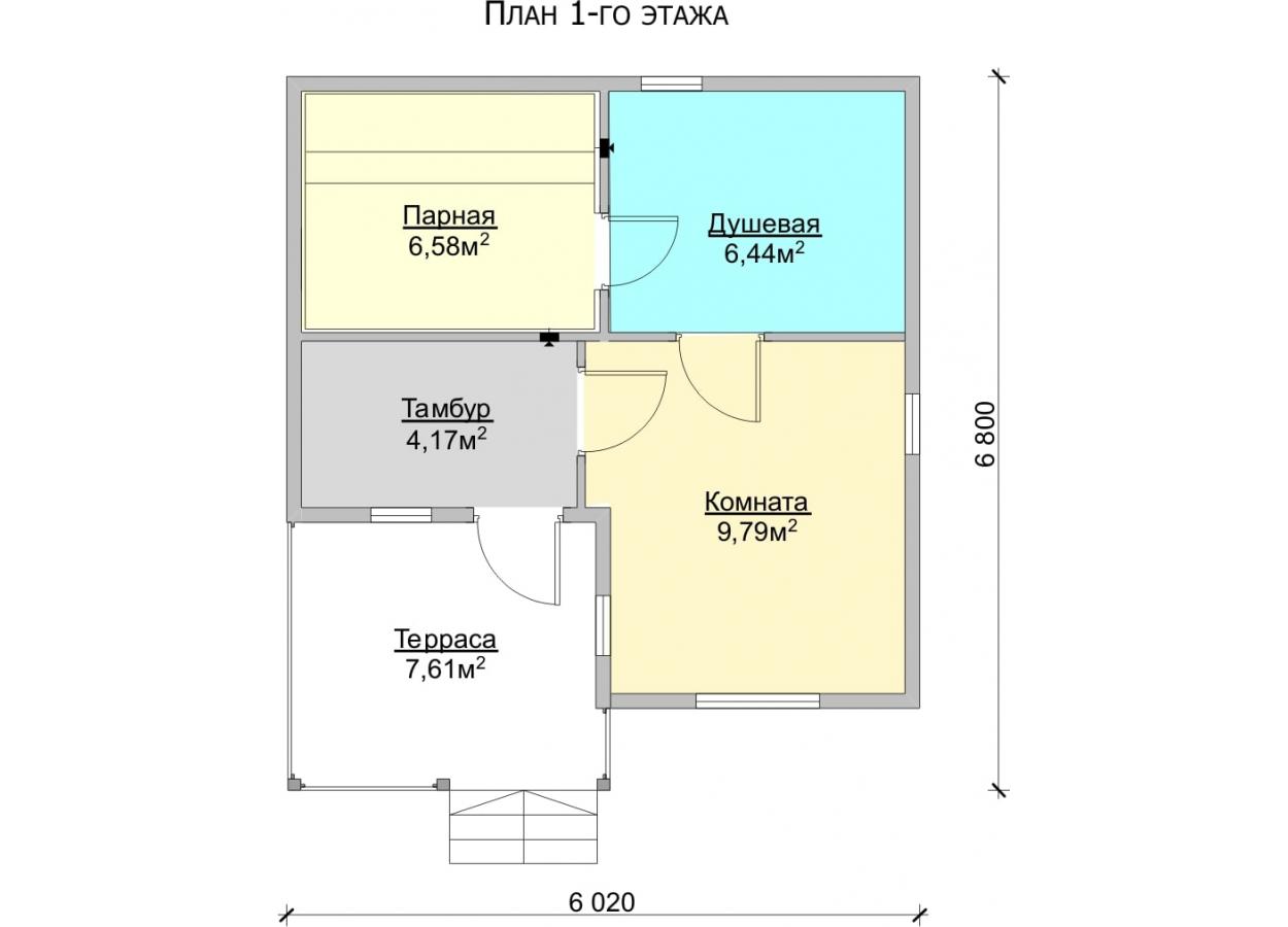 Нега 1 Б 6.0×6.8, 34.59м2