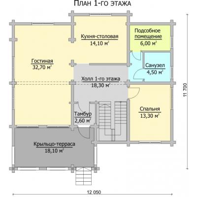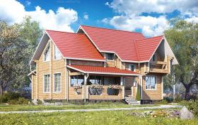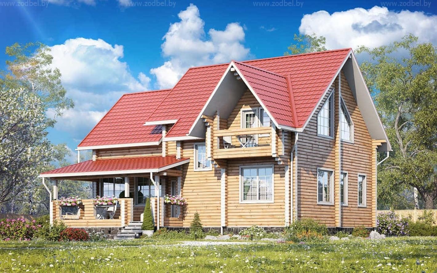 «Вятич» - особняк для респектабельных людей. Вся его «внешность» говорит о высоком статусе хозяев. Он надёжен, фундаментален и незыблем, как вечные ценности. Коттедж строится из элитного клееного бруса, отличается повышенной прочностью, низкой теплопроводностью, экологичностью и долголетием. Глядя на «Вятич», в первую очередь обращаешь внимание на вместительную террасу, которая может стать беседкой для чаепитий и барбекю, либо жилой комнатой (если выполнить остекление и утепление). Зайдя в дом, мы практически сразу попадаем в просторную гостиную, совмещенную с кухней-столовой. Кроме этого, на первом этаже имеются спальня, холл, гардеробная и санузел. На второй этаж ведёт роскошная массивная лестница. Здесь находятся 3 спальни, разделенные холлом, и большая ванная комната, в которой можно установить джакузи. Одна из спален выходит на балкон, где приятно в теплый день отдыхать в шезлонге с книгой, наслаждаясь свежим воздухом и пением птиц. Внешняя мощь дома сочетается с тёплой и даже трогательной внутренней атмосферой, которая достигается, благодаря большой площади остекления. Солнечные лучи повсюду, они буквально обволакивают внутренне пространство комнат, делая их уютнее. Поселившись в «Вятиче», Вы быстро поймёте, что это не просто дом, это надёжный тыл. И как бы не менялась жизнь вокруг, здесь Вы всегда будете чувствовать душевный покой, уют и тепло домашнего очага.