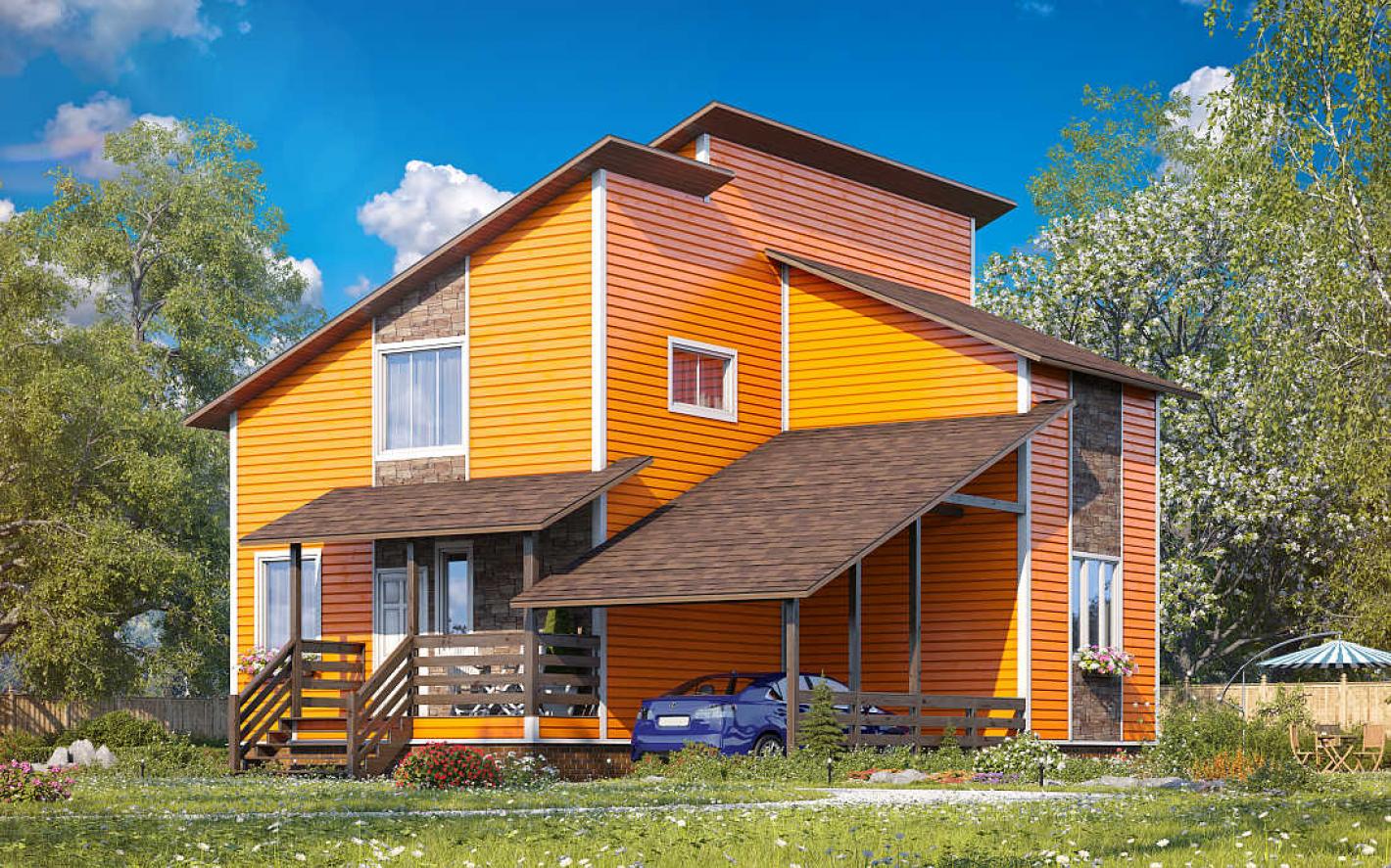 Этот коттедж - «Велес» в третьем поколении. Он унаследовал лучшие качества своих предшественников – модульный принцип, позволяющий увеличивать площадь коттеджа, студийную планировку, которая делает необъятным пространство первого этажа, высокие потолки на втором этаже (до 3,20 м). Кроме этого, у «Велеса-3» и на первом, и на втором этажах имеются просторные холлы, которые обогащают интерьер. «Велес-3» вообще даёт хозяевам полную свободу интерьерных решений, подчёркивающих индивидуальный образ жизни семьи. Например, гостиная первого этажа может превратиться в уютный каминный зал, а комната стать библиотекой или кабинетом. Три спальни второго этажа можно оформить в романтическом стиле, установив здесь мансардные окна. Тогда по утрам к вам чаще будет заглядывать солнце, а по вечерам – звёзды. С внешней стороны здания предусмотрен навес, который может использоваться и как стоянка для автомобиля, и как вместительное шале, где в тёплое время года приятно принимать гостей. Словом, построив «Велес-3», Вы сможете построить свою загородную жизнь именно так, как ВЫ того пожелаете!